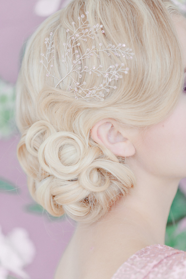 - wunderschönen rosa farbenen, facettierten Swarowskisteinen, befestigt an einem feinen Batt aus champagner farbenen Schmuckdraht
